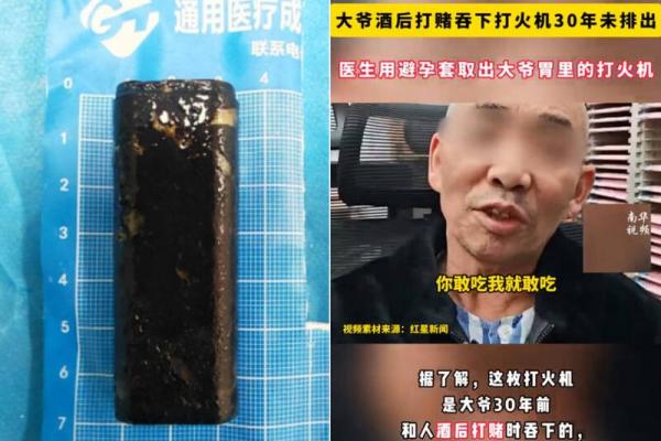 المحاولات الأولى لإخراج الجسم فشلت بسبب سطحه الأملس، ما دفع الفريق الطبي لتأجيل العملية إلى أن يحددوا طبيعته، وعند سؤال الرجل عن أي حادث قديم استعاد ذكرى بعيدة من أوائل تسعينيات القرن الماضي، عندما ابتلع قدّاحة بلاستيكية في سهرة مع أصدقائه بدافع المزاح والرهان. ظن الرجل الصيني أن القدّاحة خرجت من جسده مع الوقت، ولم يخبر أسرته بالأمر مُطلقًا.. هكذا تلقى الأطباء القصة كالصاعقة!