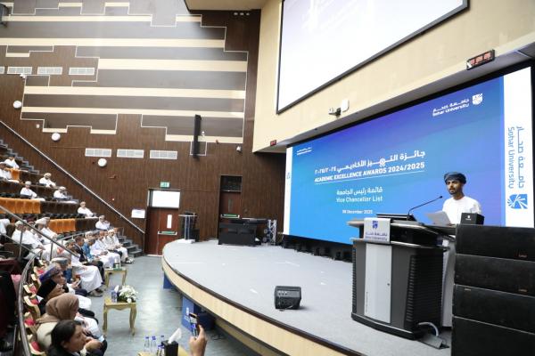احتفلت جامعة صحار باليوم العالمي للغة العربية، في فعالية نظّمتها لجنة الأنشطة والفعاليات بكلية التربية والآداب، وذلك على مسرح الجامعة، تحت رعاية الدكتور حمدان بن سليمان الفزاري رئيس الجامعة، وبحضور عدد من أعضاء الهيئتين الإدارية والأكاديمية وجمعٍ من الطلبة.