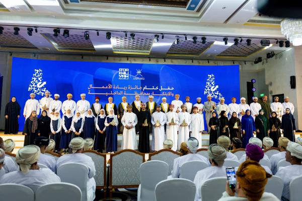 احتفلت محافظة الداخلية بختام جائزة ريادة الأعمال والابتكار لعام 2025، تحت رعاية سعادة الشيخ هلال بن سعيد الحجري محافظ الداخلية، إذ تخللت الفعالية تقديم عروض مرئية وثّقت مسيرة الجائزة منذ انطلاقتها، مستعرضةً جهود المشاركين وبرامج التأهيل ومراحل التقييم، إضافة إلى الأنشطة المصاحبة التي رافقت الجائزة خلال الفترة الماضية.