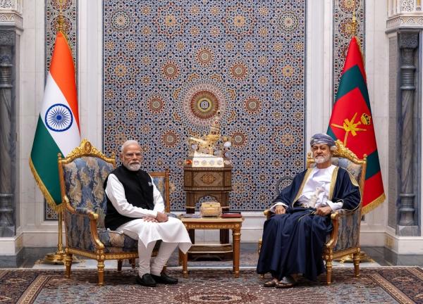 "تلبية لدعوة كريمة من لدن حضرة صاحب الجلالة السُّلطان هيثم بن طارق المُعظّم، سلطان عُمان -حفظه الله ورعاه-، قام دولة ناريندرا مودي رئيس وزراء جمهورية الهند بزيارة رسمية إلى سلطنة عُمان في الفترة من 17 إلى 18 ديسمبر 2025 ، حيث استقبل حضرة صاحب الجلالة السُّلطان هيثم بن طارق المُعظّم- حفظه الله ورعاه - دولة الرئيس في قصر البركة العامر بالإضافة إلى لقائه بعدد من كبار المسؤولين في سلطنة عُمان.
