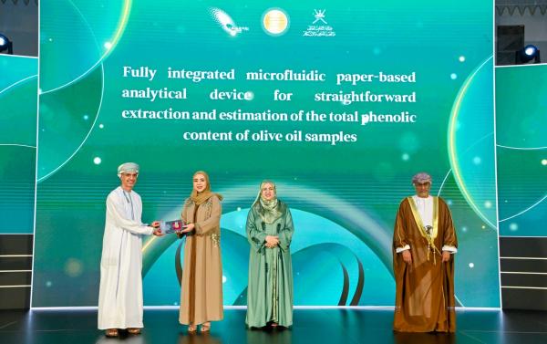 وقال الأستاذ الدكتور حيدر بن أحمد اللواتي، الباحث في جهاز تحليلي متكامل قائم على تقنية مختبر على ورق لاستخراج وتقدير محتوى الفينولات الكلي في عينات زيت الزيتون بطريقة بسيطة، أن هذا البحث يقدم جهازًا مبتكرًا مصغرًا قائمًا على تقنية مختبر على ورق، للتحليل السريع الميداني للمركبات الفينولية في زيت الزيتون، وهو منتج مرتبط ارتباطًا وثيقًا بالزراعة والاقتصاد في عُمان. باستخدام أُطُر معدنية-عضوية متقدمة (MOFs)، كما يوفر الجهاز كشفًا حساسًا لمضادات الأكسدة التي تلعب دورًا أساسيًا في جودة زيت الزيتون وفوائده الصحية، وهذا يتناغم تمامًا مع رؤية "عُمان 2040" التي تؤكد على تبني التقنيات الحديثة ورفع معايير جودة الغذاء".