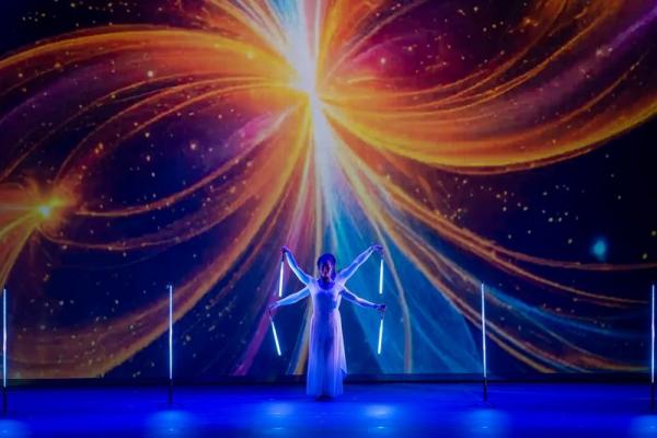 وجاء العرض العائلي الموجه لجميع الأعمار، نابضًا بالجمال والمتعة والدهشة؛ انطلاقًا من لحظة تقبع خارج الزمن، تحول فيها الضوء إلى عاطفة، والعاطفة إلى نور، وتواصل العرض بهذه الشاعرية البصرية، فكل فصل هو موجة، ونبضة، فتحول الضوء إلى لغة، والفنانون إلى نجوم نابضة تهدي الجمهور حكاية بلا كلمات، قصيدة بصرية عن الخلق، والتجدد في رحلة عبر الكون، وأعماق الذات؛ حيث استمتع الجمهور، الذي قضى 75 دقيقة متواصلة من الجمال مع هذا العرض الذي يُعد أوبرا رقمية وحسية مزجت بين شعر الحركة، وقوة الموسيقى، وسحر الضوء، قدمها أكثر من 12 فنانًا، اشتركوا في رقصة كونية ساحرة، قامت بتصميمها أنايل أمستوتز. وكان كل فصل بمثابة مجرة، وكل حركة نجم مشتعل، وكل نفس يخلق اهتزازًا.