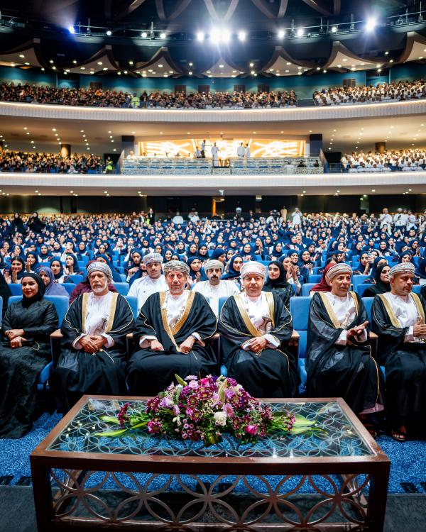 ورعى حفل التخرج صاحب السمو السيد حارب بن ثويني بن شهاب آل سعيد، وذلك على مسرح مدينة العرفان في مركز عُمان للمؤتمرات والمعارض، بحضور عدد من أصحاب السعادة والمسؤولين وأولياء الأمور وأعضاء الهيئتين الأكاديمية والإدارية بالجامعة.