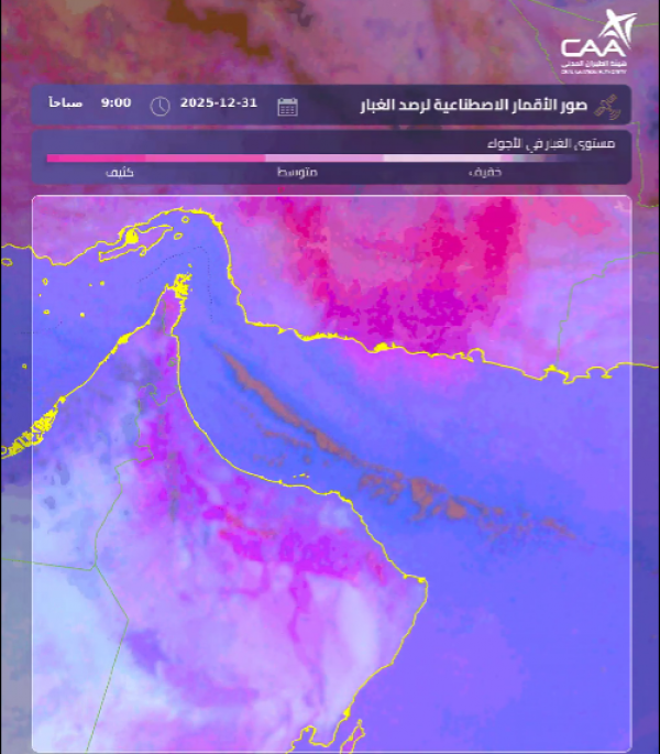نبهت الأرصاد العمانية اليوم الأربعاء، أن صور الأقمار الاصطناعية توضح تحرك كتلة من الغبار قادمة من الجمهورية الإيرانية بإتجاه المناطق الساحلية لبحر عُمان مع إحتمالية تأثر المحافظات الشمالية خلال قادم الوقت.