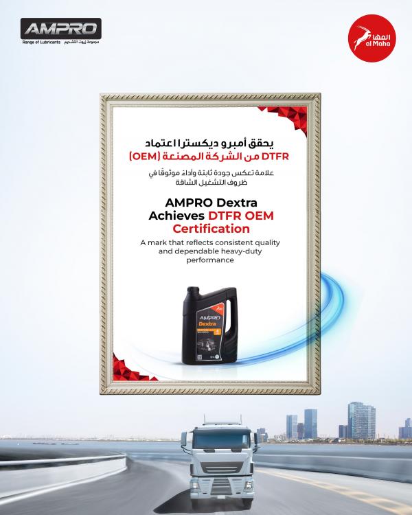 ويعزز هذا الإنجاز ثقة العملاء ومشغلي أساطيل النقل في استخدام زيت أمبرو دكسترا بمحركات شاحنات مرسيدس-بنز المعتمدة، لما يوفره من حماية فعّالة للمحرك، وإطالة لعمره التشغيلي، وأداء موثوق في مختلف البيئات وظروف العمل الشاقة. كما يؤكد الاعتماد التزام شركة المها بتقديم حلول تشحيم تلبي أعلى المعايير الدولية وتواكب متطلبات كبرى الشركات المصنّعة للمعدات الأصلية.