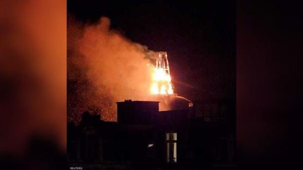 وبدأت النيران بعد منتصف الليل مباشرة، مما أدى إلى انهيار برج الكنيسة التي يعود تاريخ بنائها إلى عام 1872.