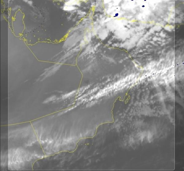 قالت الأرصاد العمانية إن آخر صور الأقمار الصناعية توضح هطول أمطار متفرقة على محافظات مسندم والبريمي وشمال الباطنة وأجزاء من محافظة الظاهرة.