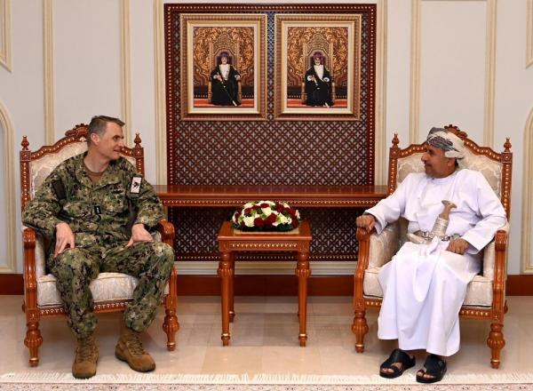 كما استقبل اللواء الركن بحري سيف بن ناصر الرحبي قائد البحرية السلطانية العُمانية، أمس بمكتبه بمعسكر المرتفعة، الفريق بحري كورت أ. رينشو قائد القيادة المركزية للبحرية الأمريكية والوفد المرافق له. وقد رحب اللواء الركن بحري قائد البحرية السلطانية العُمانية بقائد القيادة المركزية للبحرية الأمريكية، وتم خلال المقابلة تبادل وجهات النظر وبحث عدد من الأمور ذات الاهتمام المشترك.