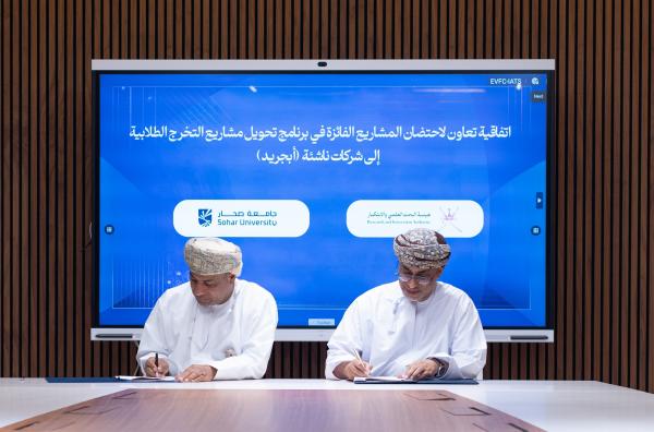 وقّعت هيئة البحث العلمي والابتكار صباح أمس الأربعاء اتفاقية تعاون لاحتضان المشاريع الفائزة في النسخة الثامنة من برنامج تحويل مشاريع التخرج الطلابية إلى شركات ناشئة «أبجريد»؛ وذلك مع كلٍّ من: جامعة صحار والكلية الحديثة للتجارة والعلوم، في إطار سعي الهيئة إلى تعزيز التعاون والشراكة مع المؤسسات الأكاديمية والقطاع الخاص في سلطنة عُمان؛ بما يسهم في تحقيق مستهدفات رؤية "عُمان 2040" ودعم الجهود الرامية إلى الارتقاء بالمنظومة البحثية والابتكارية.