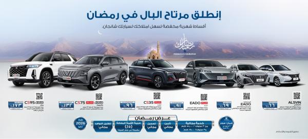 أعلنت شانجان عُمان- الممثلة بشركة الخليج العربي للسيارات والمعدات- إطلاق حملة تجزئة خاصة بمناسبة شهر رمضان المبارك على مجموعة مختارة من طرازات السيدان والـSUV  الأكثر شعبية، لتمنح الزبائن مزايا امتلاك إضافية خلال الشهر الفضيل، إذ يسري العرض لفترة محدودة حتى 8 أبريل 2026، وهو متاح حصريًا لزبائن التجزئة عند شراء الطرازات المشمولة بالحملة.