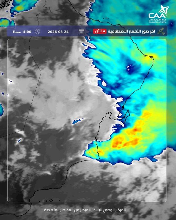 قالت المديرية العامة للأرصاد الجوية بهيئة الطيران المدني إن صور الأقمار الاصطناعية والرادار توضح نشاط الخلايا الرعدية وهطول أمطار متفاوتة الغزارة على محافظات مسندم وجنوب الشرقية والوسطى؛ لتشمل خلال قادم الوقت محافظتي البريمي والظاهرة.