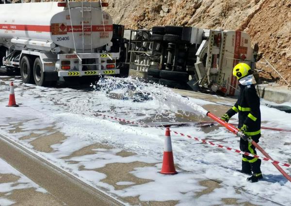 استجابت فرق الإطفاء بوحدة الدفاع المدني والإسعاف بمحافظة #البريمي لحادث تدهور صهريج محمل بمواد خطرة في ولاية البريمي، حيث تمكنت الفرق من تأمين الموقع واحتواء المادة المتسربة، وقد أسفر الحادث عن وفاة سائق الصهريج.
