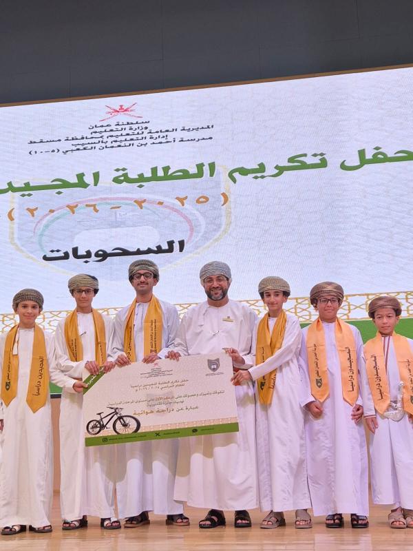 احتفت مدرسة أحمد بن نعمان الكعبي بطلبتها المجيدين للعام الدراسي (2025/ 2026)، في حفلٍ تربوي بهيج أُقيم تحت رعاية المكرم الدكتور محمد بن سليمان بن عبد الله الراشدي، وبحضور عدد من الكوادر التربوية وأولياء الأمور وجمع من المدعوين.