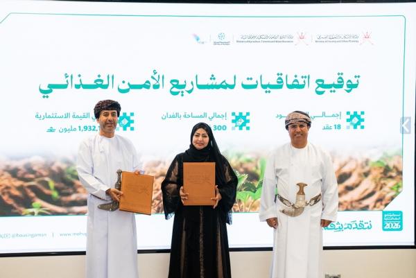 وقّعت وزارة الإسكان والتخطيط العمراني بالتعاون مع وزارة الثروة الزراعية والسمكية وموارد المياه، الأحد، 18 عقد انتفاع زراعي لمشاريع استثمارية موزعة على عدد من محافظات سلطنة عُمان.