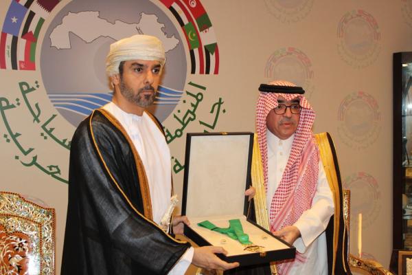 تسلّم الوسامَ سعادةُ السّيد نجيب بن هلال البوسعيدي، سفير سلطنة عُمان لدى المملكة العربية السعودية خلال استقبال معالي الدّكتور بندر بن فهد آل فهيد، رئيس المنظمة العربيّة للسياحة له بمقرّ المنظّمة في مدينة جدّة.