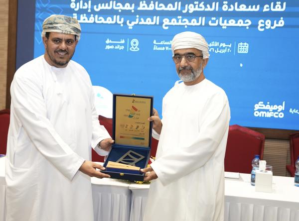 جاء ذلك خلال لقائه برؤساء مجالس إدارة مؤسسات المجتمع المدني بالمحافظة، بحضور عدد من مسؤولي الجهات الحكومية والخاصة، ورؤساء اللجان الثقافية والإعلامية بالمحافظة، وذلك بدعم من الشركة العمانية الهندية للسماد "أوميفكو"، في إطار تعزيز التكامل بين مختلف القطاعات.