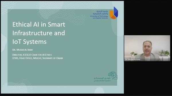 وقدّم المحاضرة الدكتور مصعب الراوي، مدير كرسي الإيسيسكو لأخلاقيات الذكاء الاصطناعي بجامعة التقنية والعلوم التطبيقية، حيث تناول من خلالها أبرز التحولات التي يشهدها قطاع التعليم في ظل التطور المتسارع لتقنيات الذكاء الاصطناعي، والدور المتنامي لهذه التقنيات في إعادة تشكيل منظومة التعليم بمختلف عناصرها، بما في ذلك أساليب التدريس، وبيئات التعلم، وآليات التقييم.